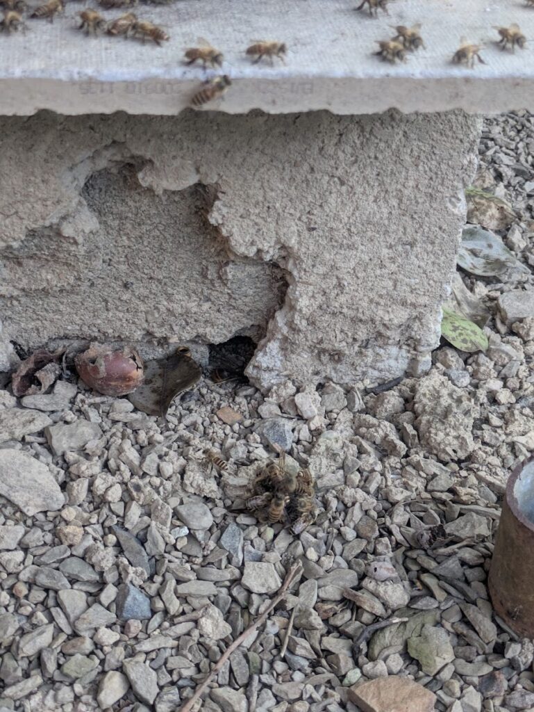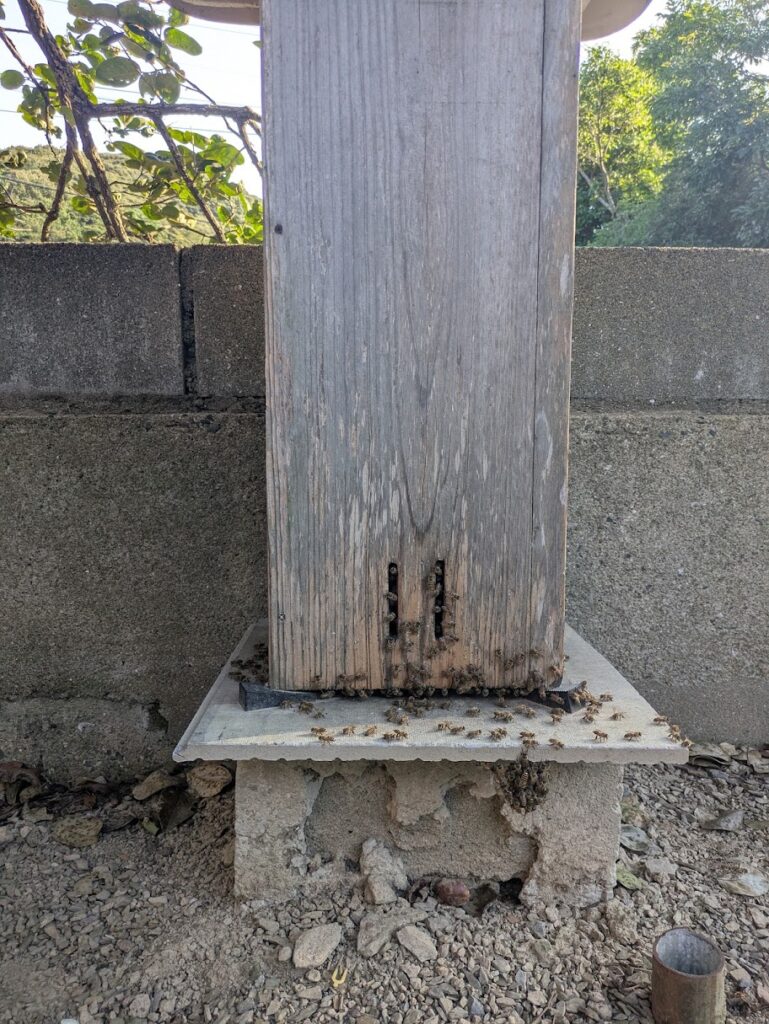 実は、写真に写っているこの丸い蜂の塊——これは、ミツバチたちがスズメバチを囲んで撃退しているところ。