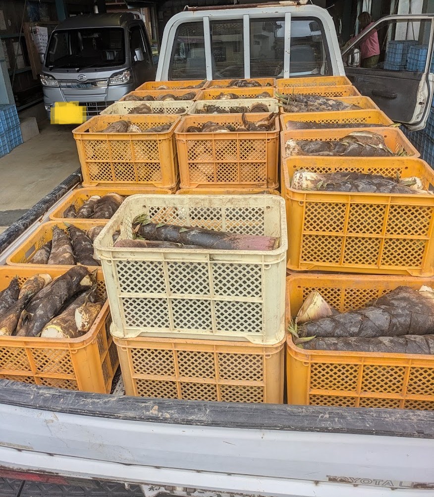 トラックいっぱいのタケノコを見て「よく頑張ったな」と自分を褒めておきます。