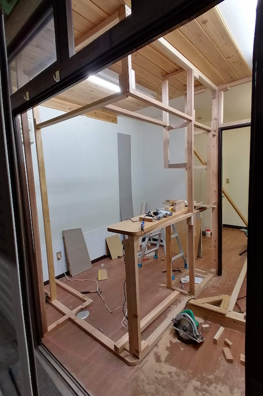 このたび、太宰府珈琲は個人から法人を設立することとしました。引き続き屋号として『太宰府珈琲』は使用します。会社名はアルファベット3文字『株式会社○○〇』としました。焙煎所の建物は友人のお兄さんMさんにお願いしましたが、整地や内装など出来ることは自分で。 井尻店は内装だけですが、エアコンの取り付けをKさんにお願いした以外は、友人、家族の協力をいただきながら基本的には自分で作りました。プロの作業と比べて素人っぽさやセンスの無さも見られますが、そこはご愛敬。