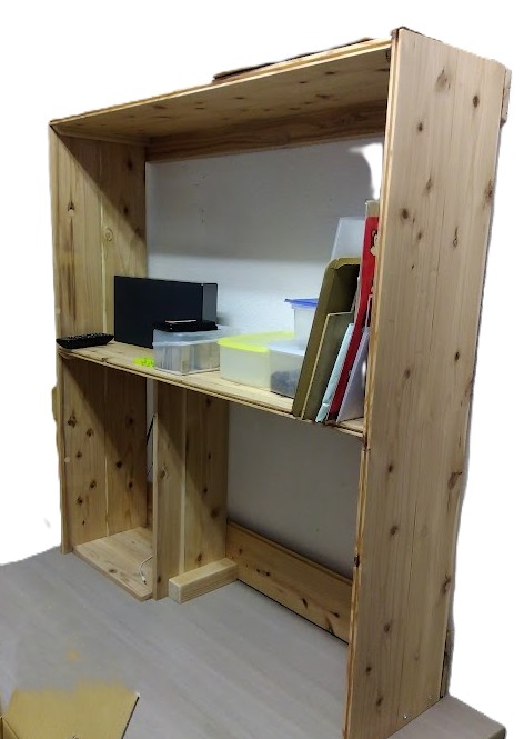 井尻店の作業場に棚が出来ました。作ろうと計画してなかなか進みませんでしたが、材料をM兄貴にご提供いただきました。しかも希望のサイズにカットしていただいたのでとっても助かりました。仕上げ他組立等は素人ですからこんなものかと。収納容量はたいした事ありませんがたぶん片付くでしょう。右下には電子レンジを置きたいのですが…