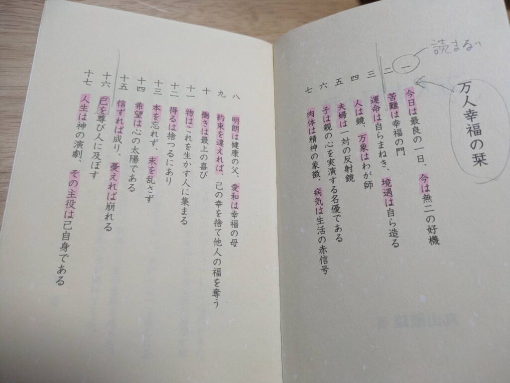 倫理法人会『万人幸福の栞』読書中
